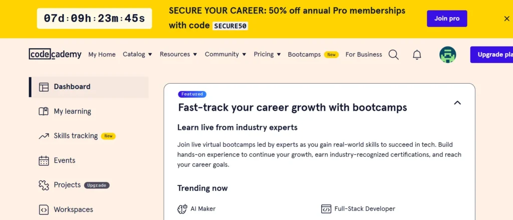 Codecademy is offering a massive 50% discount on its Pro annual plan with the promo code SECURE50 – ending on October 21st, 2025.