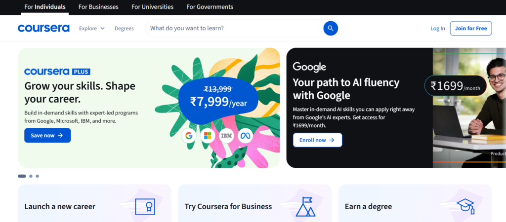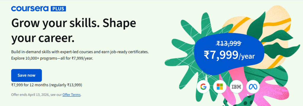 This massive discount is exclusively available in India – valid until April 27, 2026. This is the highest discount Coursera has ever offered on its annual subscription.
