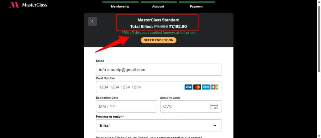Note: MasterClass discounts are only applicable on annual subscriptions not the monthly.
